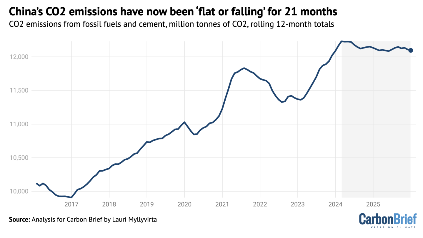 China's climate pollution has plateaued for 21 months